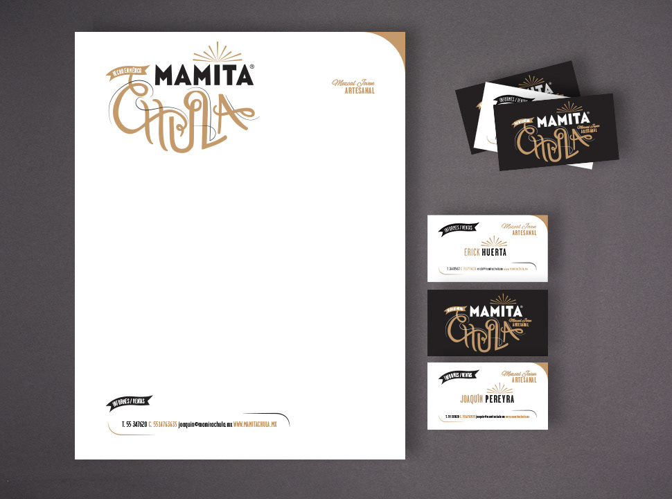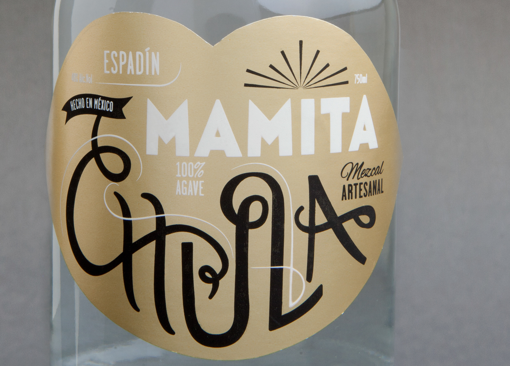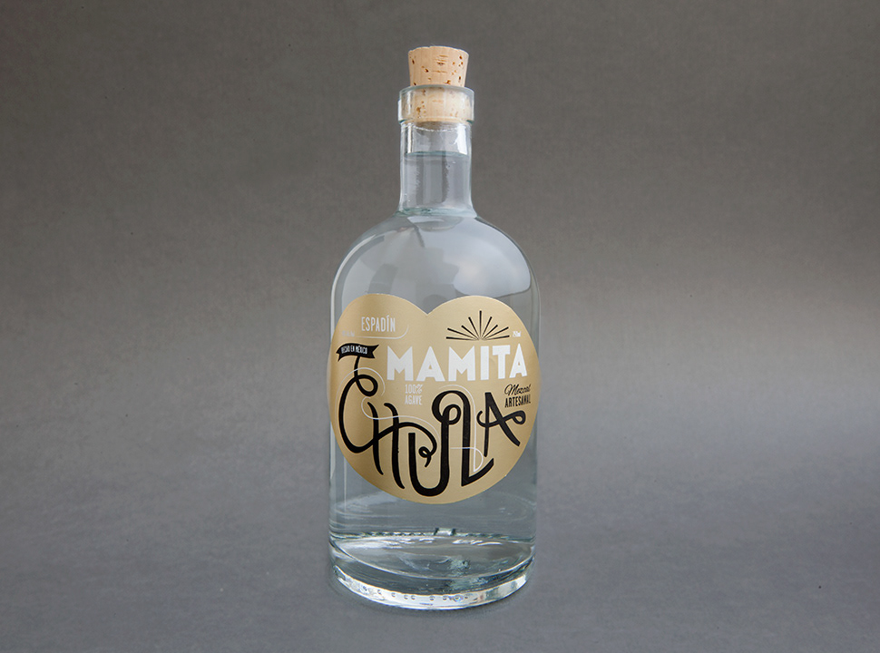 Création de la typographie et design graphique de l’étiquette de la bouteille de Mezcal « Mamita Chula ».