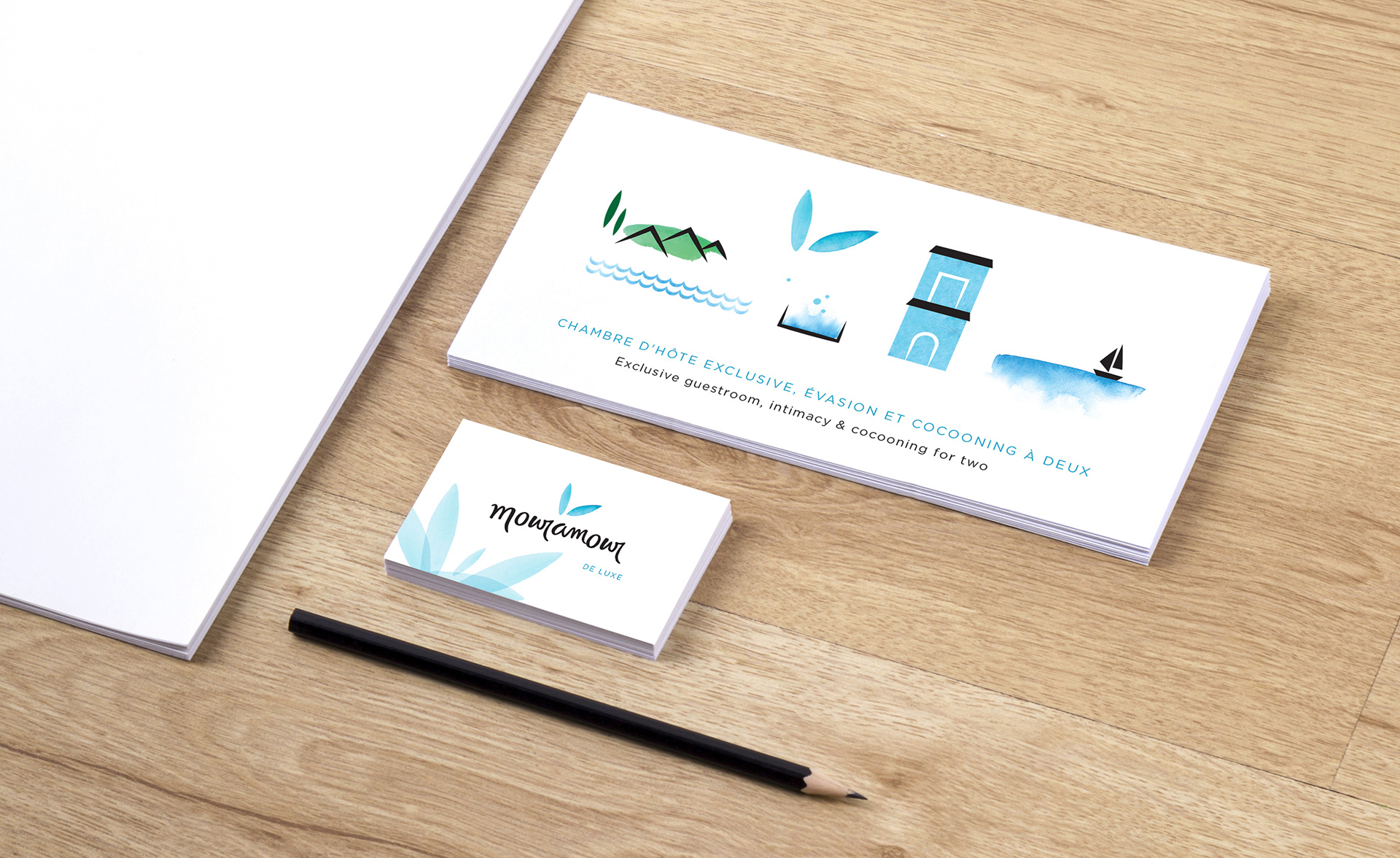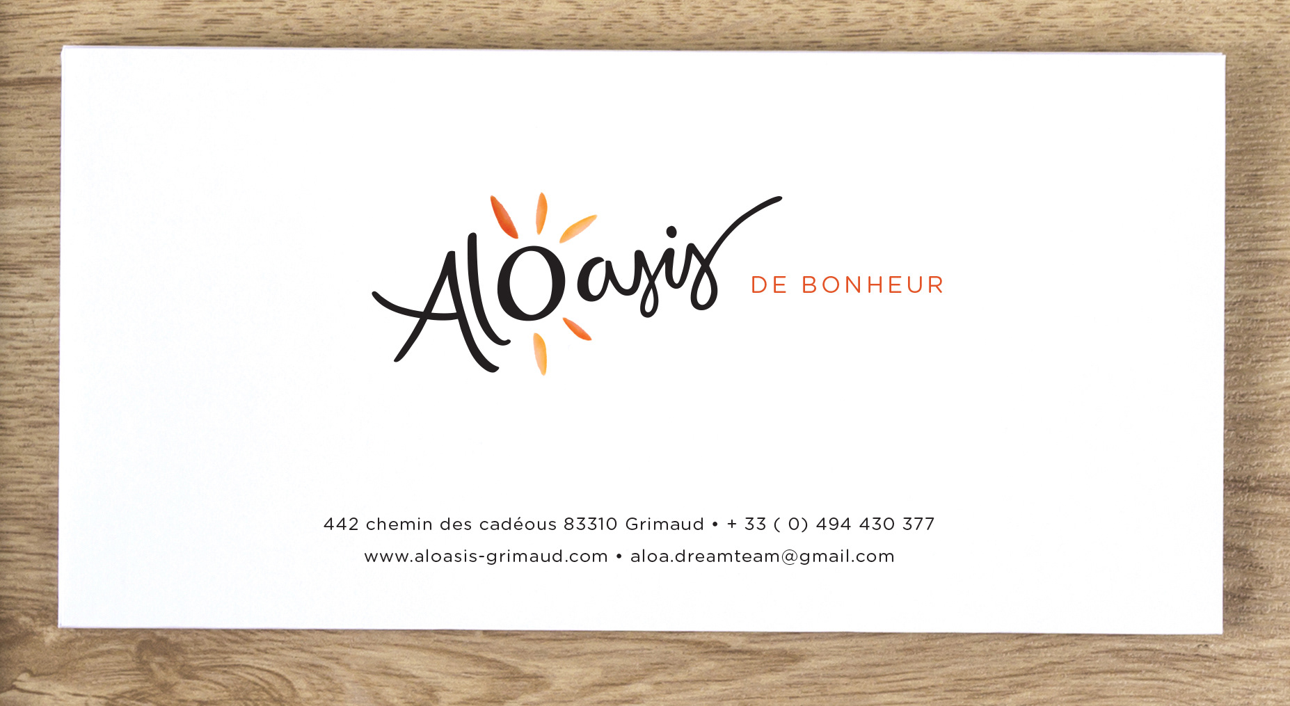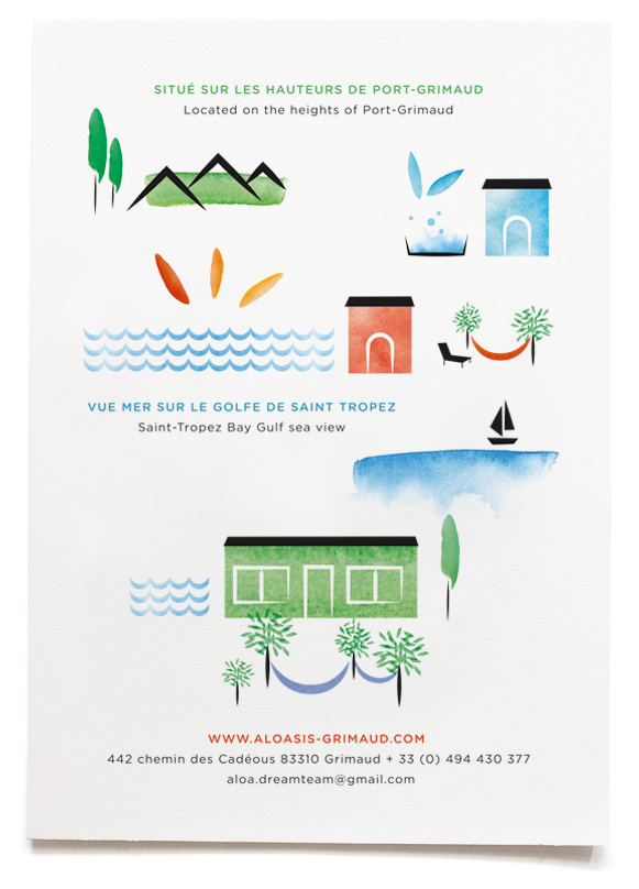 Logotypes et cartes postales pour les trois formules chambres d’hôtes de Aloasis, Saint-Tropez, France