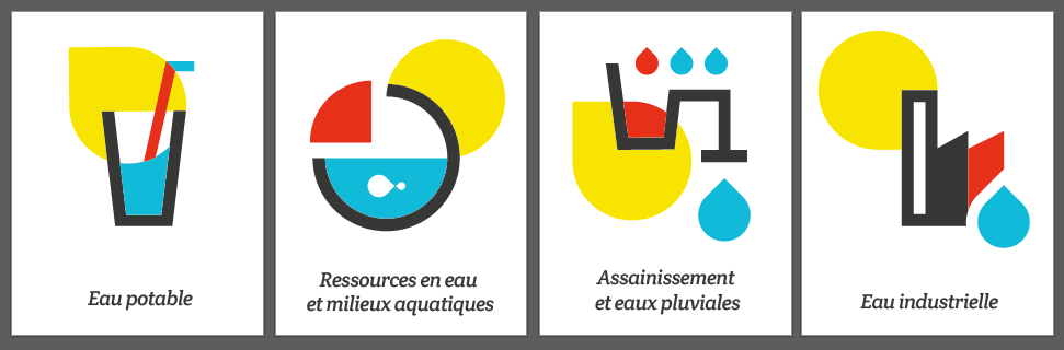 Création de l’identité visuelle, des pictogrammes thématiques, et des applications du portail WE France, Water Expertise France pour le Partenariat Français pour l’eau et l’Association Scientifique et Technique pour l’Eau et l’environnement.